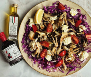 - 舞茸 しめじ きのこ 紫キャベツ モッツアレラチーズ ミニトマト