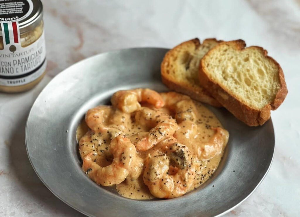 簡単なトリュフ香るパルミジャーノクリームシュリンプはいかがでしょうか?