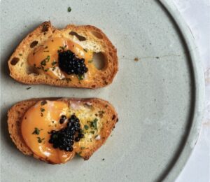 濃厚な卵黄とサクッとしたバゲットととてもよく合います。