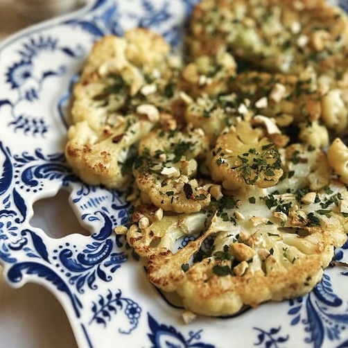 2回目を焼く。 - ④器にカリフラワーを盛り付け塩をする。