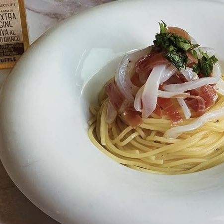 トリュフ香るイカと生ハムの冷製カッペリーニ