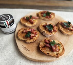 ピーナッツバターとベーコン、トリュフ蜂蜜のクロスティーニ