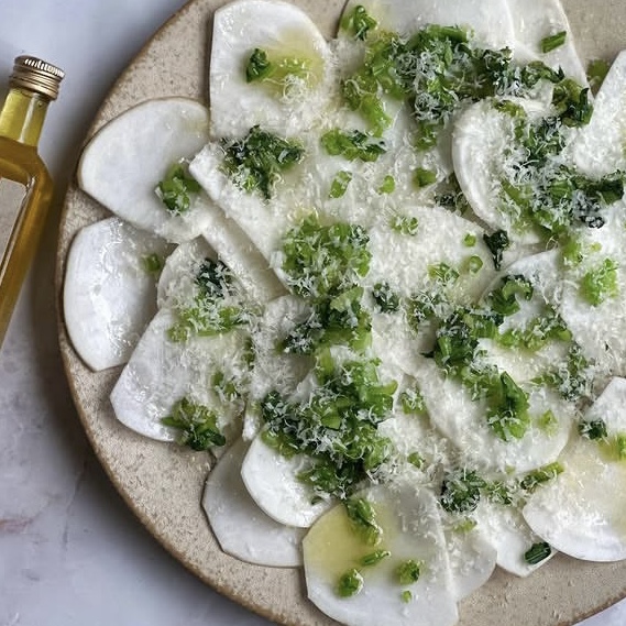 柔らかい小ぶりな春蕪を皮ごと使ったサラダのご紹介
