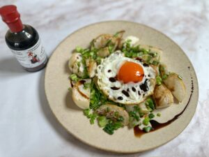 ザッと炒める。 - ④器に蕪を盛り付け目玉焼きを乗せて