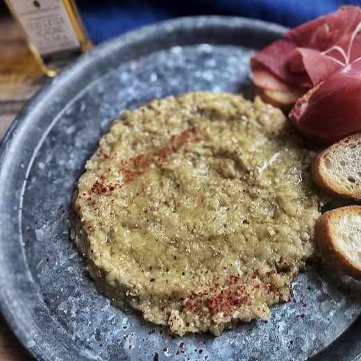 トリュフ香る焼き茄子のフムスと生ハムとバゲット