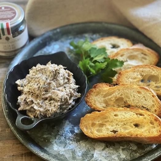 こちらはマッシュルーム、ブラックオリーブ、サマートリュフ、アンチョビ、ケイパー 、ハーブ類、スパイスの入ったトリュフ香る万能調味料で、そのままシーフードやお肉、野菜などに合わせても美味しいです。