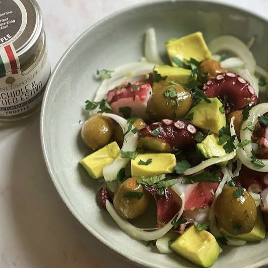 蛸とアボカドとトリュフ香る小桃のマリネ