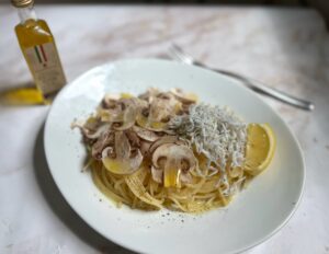 トリュフ香るフレッシュマッシュルームとしらすのパスタ